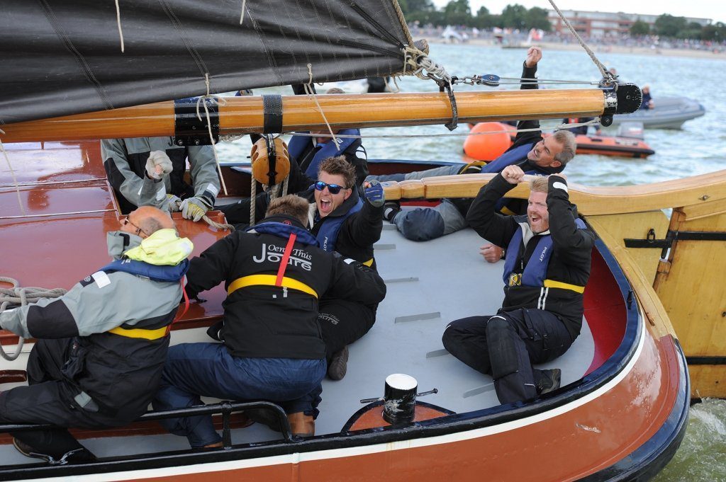 Lemmer | 30 juli 2015 – Spanning, strijd én beide klassementsleiders, Langweer en Joure, volop in de aanval. Dat kregen de skûtsjeliefhebbers, die al vroeg een plekje langs de Lemster baai hadden opgezocht, te zien. Een zandloperroute met twee mooie kruisrakken en een straffe wind, kracht 4/5, uit noordwest-west. Dirk Jan Reijenga pakte met het Jouster skûtsje de Oeral Thús de overwinning tijdens de eerste wedstrijd van de dag.