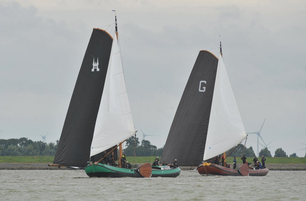 Skûtsjes voor de windmolens bij de Friese Hoek